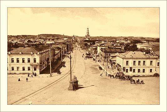 Фото сделано с Католического Костела Святой Анны. До настоящего времени не сохранилось, снесено в 1960 году и сейчас на его месте находится небольшой сквер в виде кольца перед Центральной гостиницей.